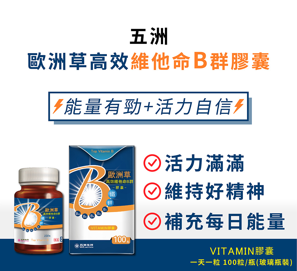 【補鐵好活力】歐洲草高效維他命B群膠囊 | 加鋅加鐵增強體力 | 100粒